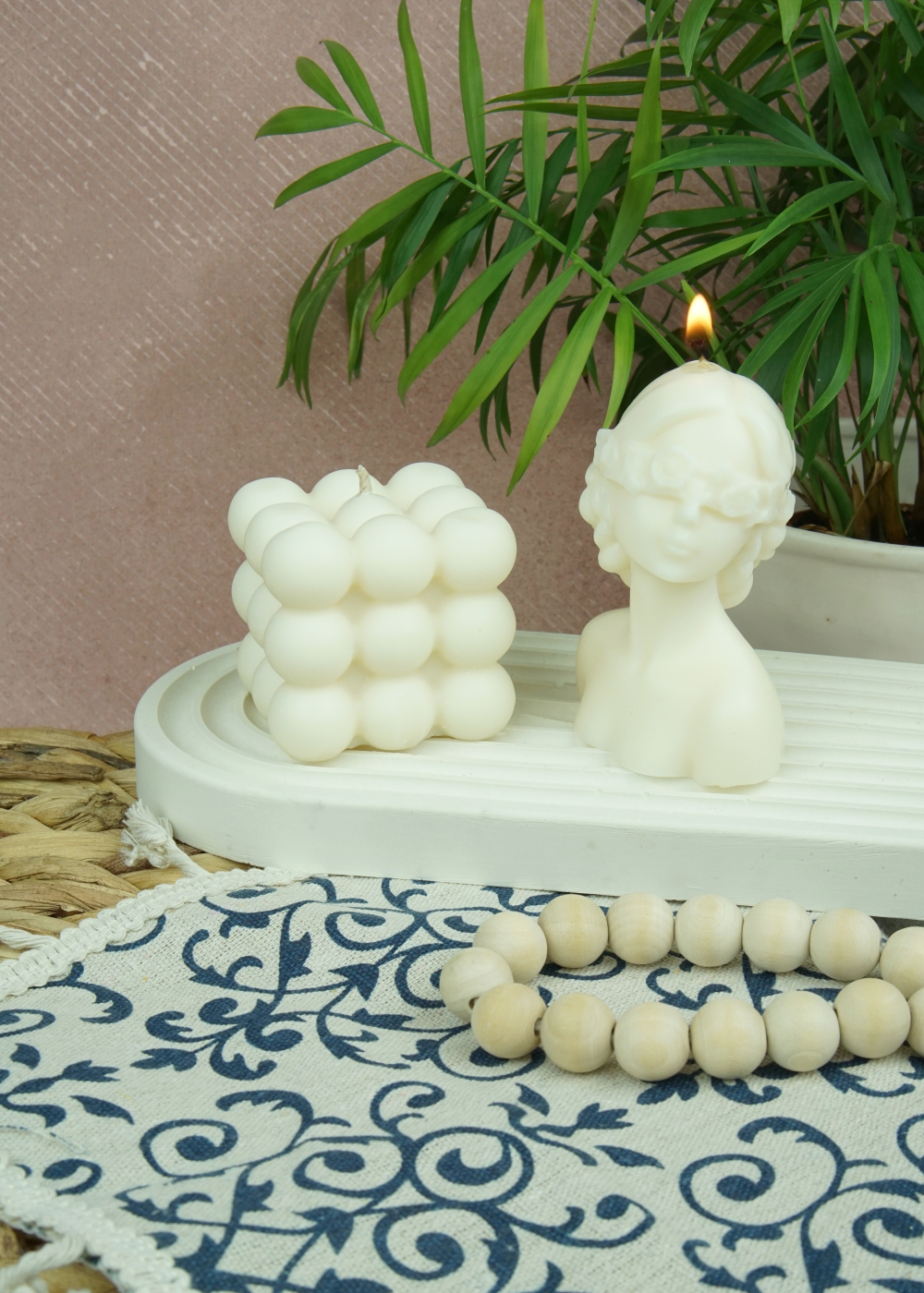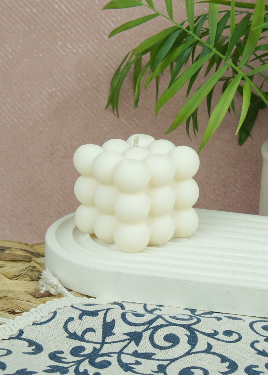 Świeca BUBBLE została wykonana z mieszanki wosków naturalnych – sojowego i rzepakowego. Skrupulatnie dobrana mieszanka wosków roślinnych pozwala na czyste spalanie świecy. Ta świeca dekoracyjna doda charakteru Twojemu wnętrzu. Dostępna w wersji bezzapachowej bądź o zapachu lawendy z cytryną.
