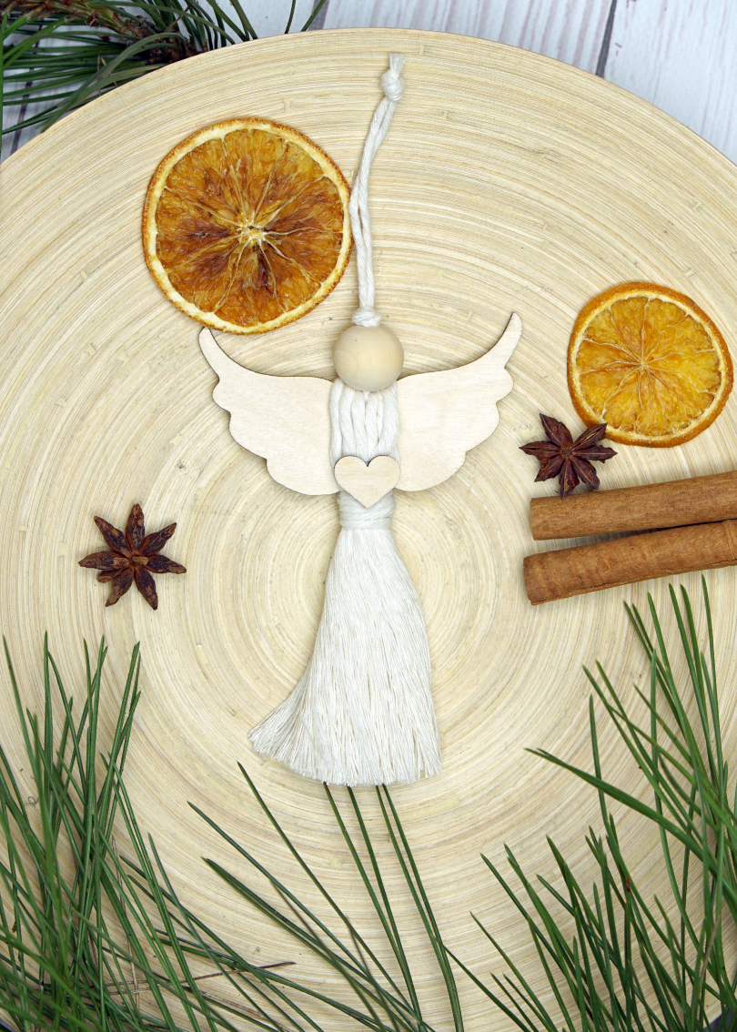 Zawieszka na choinkę aniołek makrama mały