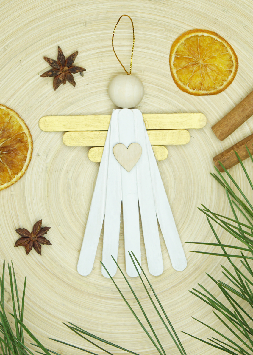 Ozdoba świąteczna została ręcznie zapleciona z bawełnianego sznurka w technice makramy.