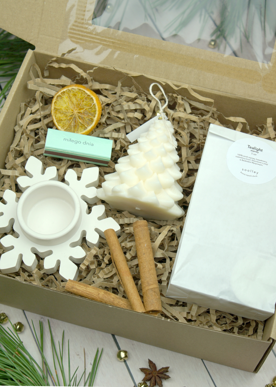 Zestaw prezentowy świąteczny – świeca choinka, świecznik